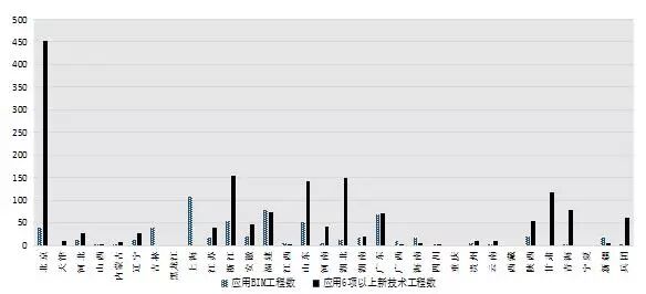 2017年二季度,全国应用建筑信息模型(BIM)技术的工程项目共计616个,应用建筑业10项新技术中6项以上新技术的项目共计1598个。其中上海、福建、广东3省(市)应用BIM技术工程项目较多,北京、浙江、湖北3省(市)推行建筑业10项新技术情况较好。